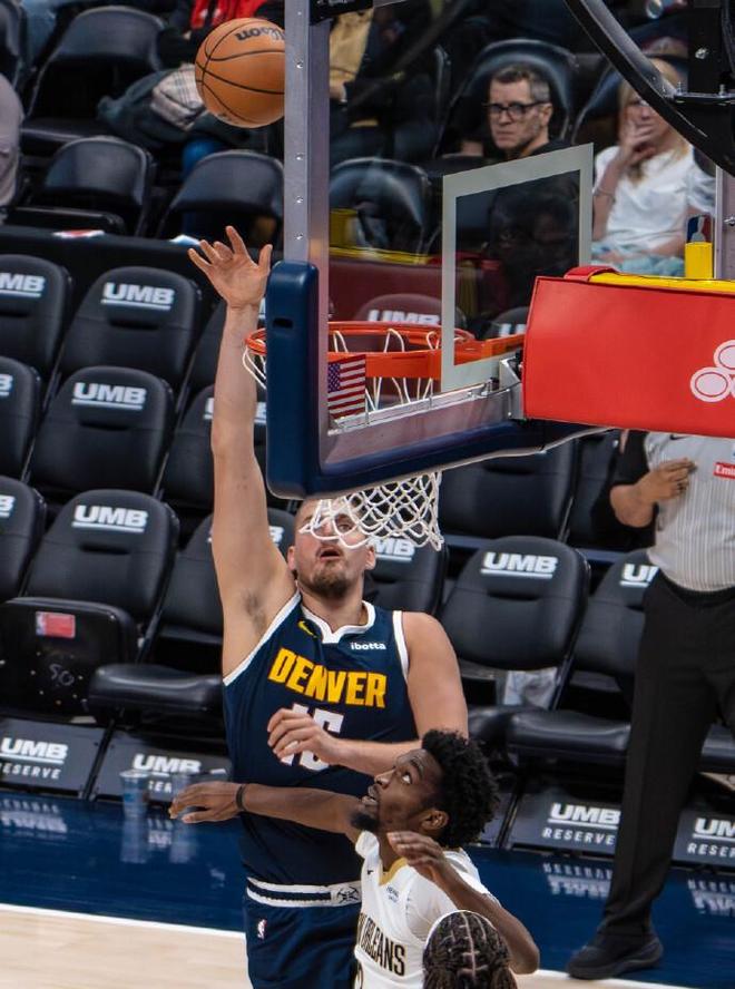 掘金过去两场战胜太阳和森林狼收获2连胜,鹈鹕前三场连输灰熊、马刺与凯尔特人一胜难求。本场鹈鹕缺少穆雷与卢尼,首节比赛掘金早早开启进攻模式,他们首节就内外开花压制鹈鹕。约基奇打满首节12分钟,6中5高效得到11+5+5,攻传结合引领掘金持续得分,首节比赛结束掘金34-25领先鹈鹕。